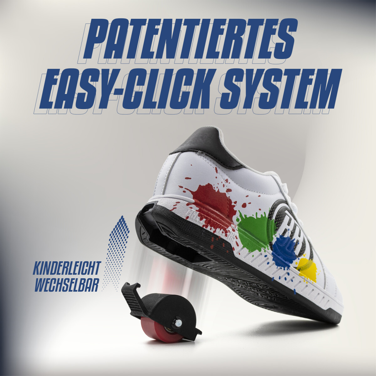 Transform your shoes into roller skates in just seconds, without any tools. The Easy-Click system makes removing and inserting the wheels effortless.