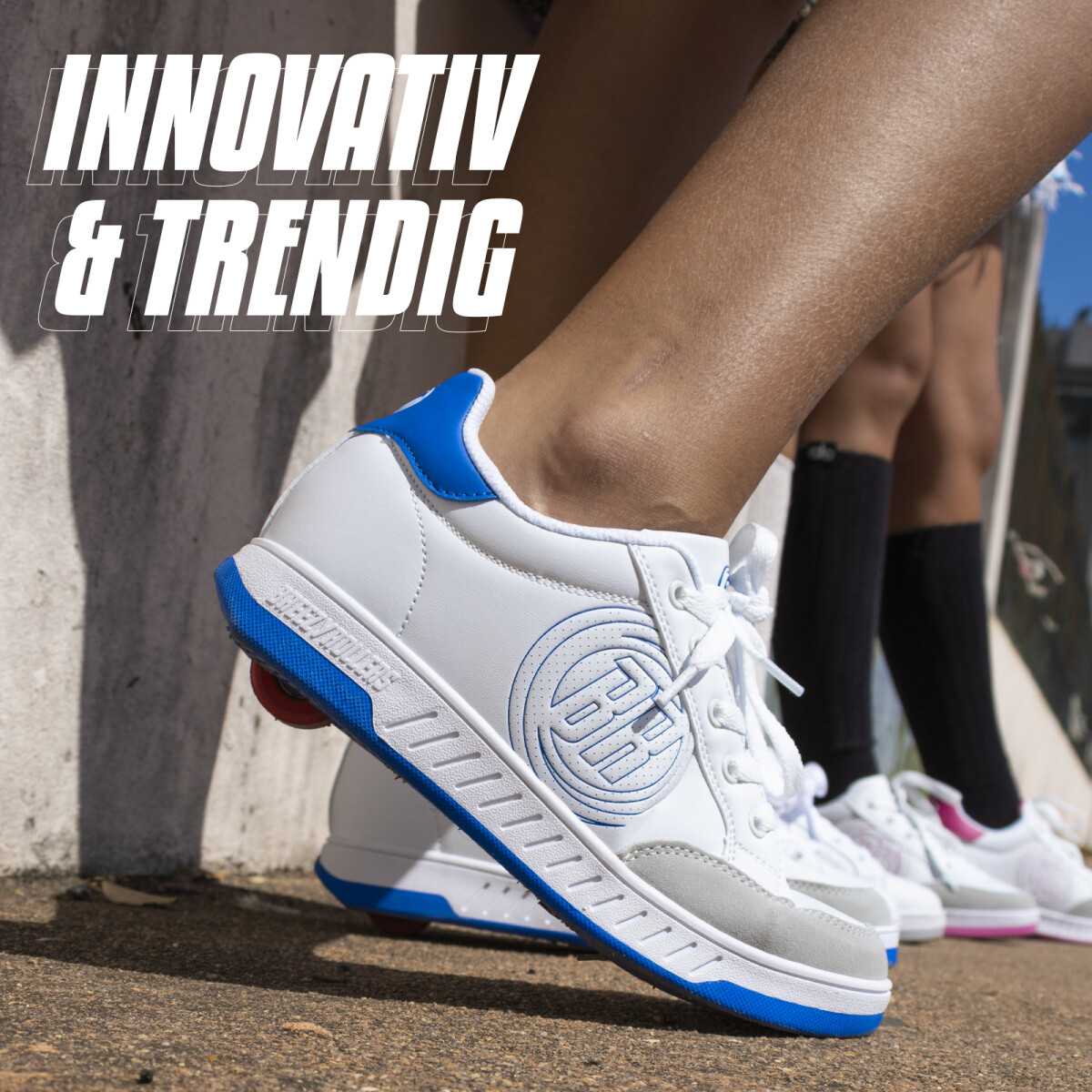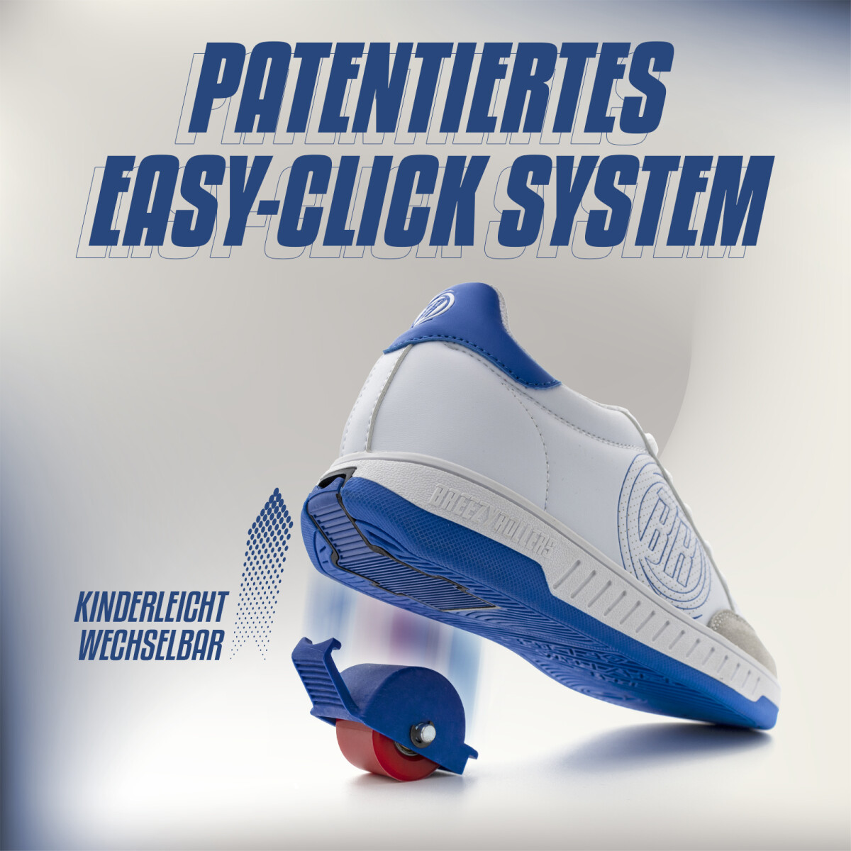 Experience the revolutionary BREZZY ROLLERS, transforming from trendy sneakers to roller skates in seconds. Thanks to the globally patented “Easy–Click“ system, you can effortlessly remove and reinsert the wheels with just one click – no tools needed!